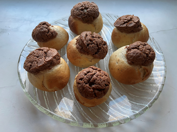 Tässä leivonnaisessa yhdistyy kaksi herkkua: pulla ja suklaakeksi. Nauti pullia sellaisenaan, tai halkaise ja täytä laskiaispulliksi. Nämä kananmunattomat ja maidottomat pullat saavat mukavasti paistoväriä, kun ne voidellaan kasvijuomalla ennen paistoa.