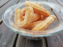 Nopeat churrot | Tämä churrotaikina on nopea tehdä. Uppopaistaminen tulee tehdä ajatuksella ja varovasti. Taikinasta tulee n. 24 kymmensenttistä churroa. Voit syödä churrot sellaisenaan. Vaihtoehtoisesti voit pyöritellä ne pelkässä sokerissa tai halutessasi voit lisätä sokeriin ruokavaliosi salliessa esim. kanelia tai muuta maustetta. Nauti sellaisenaan tai dippaa suklaakastikkeessa. |