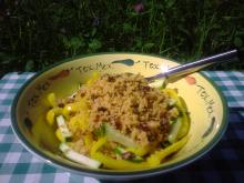 Kukkakaali-kesäkurpitsasalaatti | Nopea lisuke aterialle. Voit käyttää myös maustettuja aurinkokuivattuja tomaatteja (tarkista purkista ainesosat) tai vaikka tuoreita tomaatteja, oma ruokavaliosi huomioiden. |